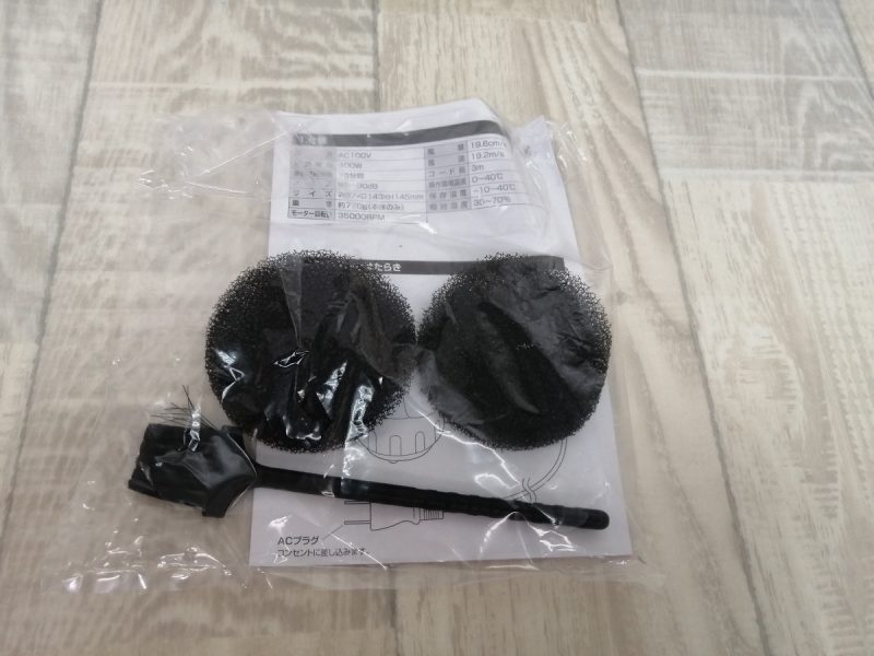 付属品は、ノズル(3種類)・フィルター(3枚)・ブラシです。