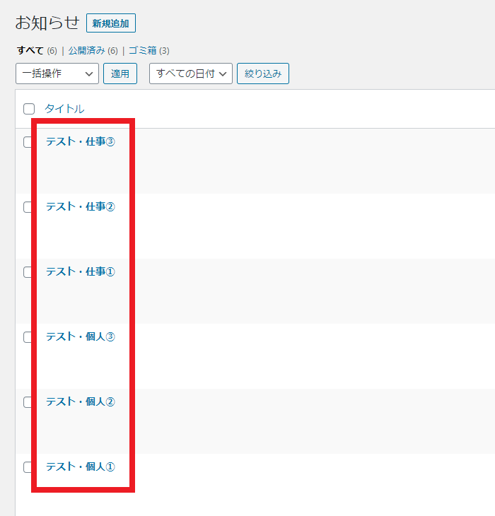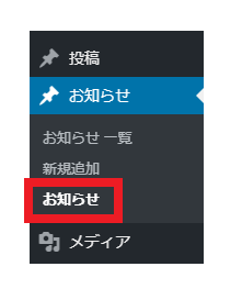 紛らわしいですが、『お知らせ』という投稿タイプに、すでに「お知らせ」(カテゴリー) が表示されています。