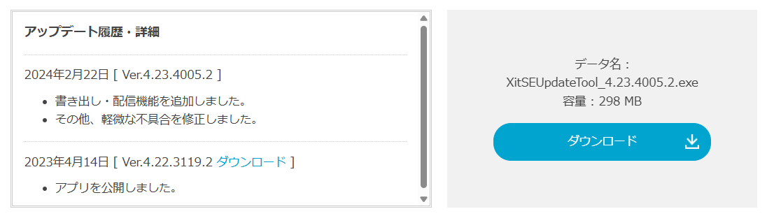 本体をUSBでパソコンに接続後、メーカーのダウンロードページから「Xit SE」というソフトウェアをダウンロードしインストールします。