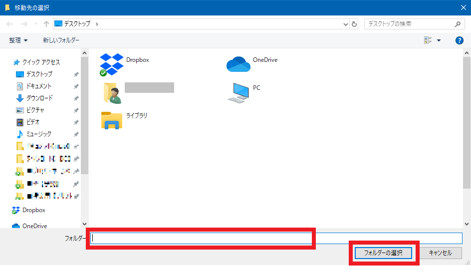 以下のダイアログが表示されたら、「場所」「移動」をクリックします。