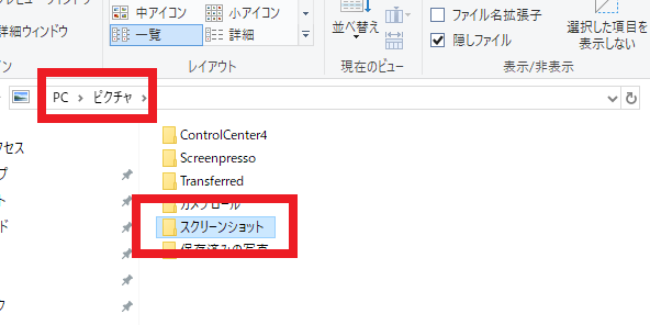「ピクチャ」フォルダの中にある「スクリーンショット」を開きます。