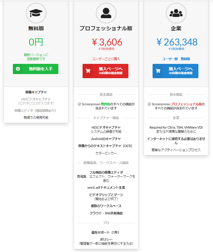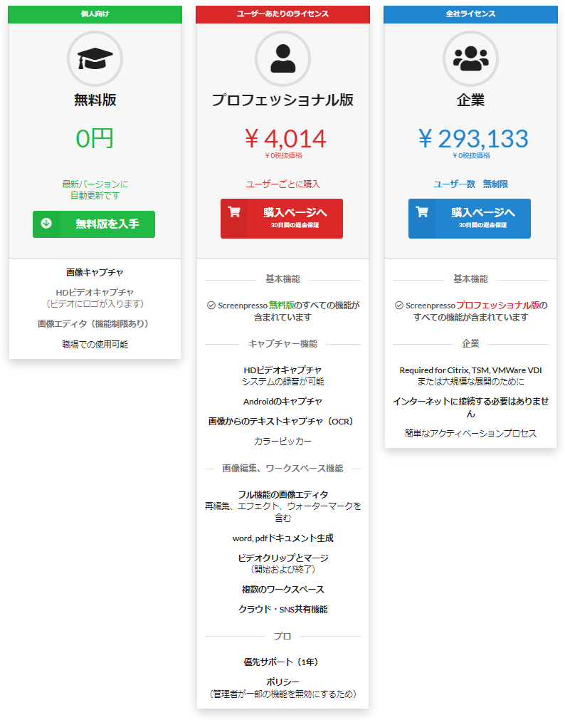 Screenpresso公式で、ライセンスの購入ページを確認してみましょう。