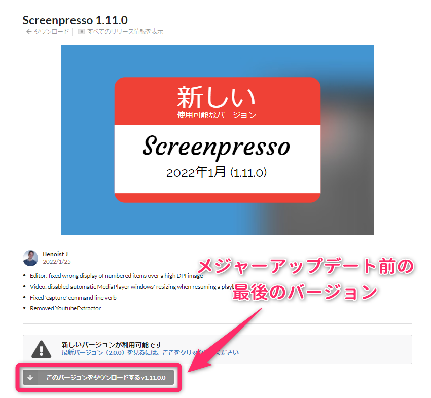 Screenpressoを前のバージョンに戻す方法【2022年5月】