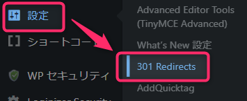 管理画面の「設定」から「301 Redirects」をクリックします。