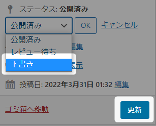 リダイレクトの設定がすべて終了したら、移動元の記事は「下書き」にしておきます。