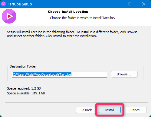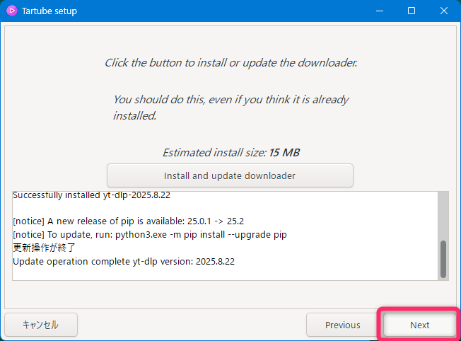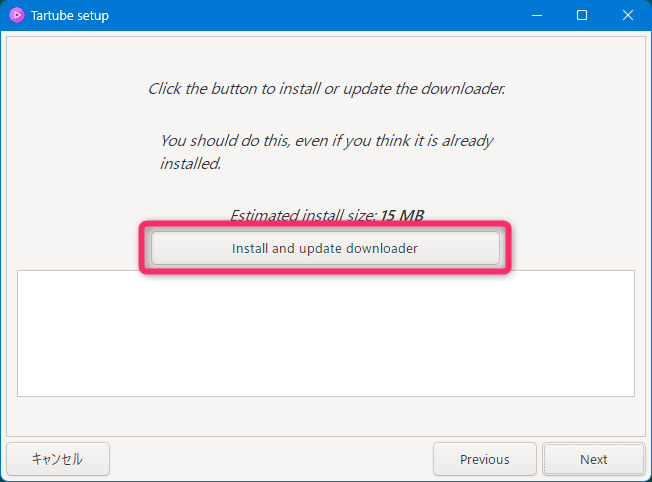 先ほど選択したダウンローダー(yt-dlp)をインストールします。