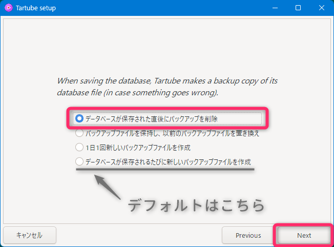 (※ソフトのデータベースを使用してみたいならば、とりあえずデフォルトのほうがよいと思われる。)