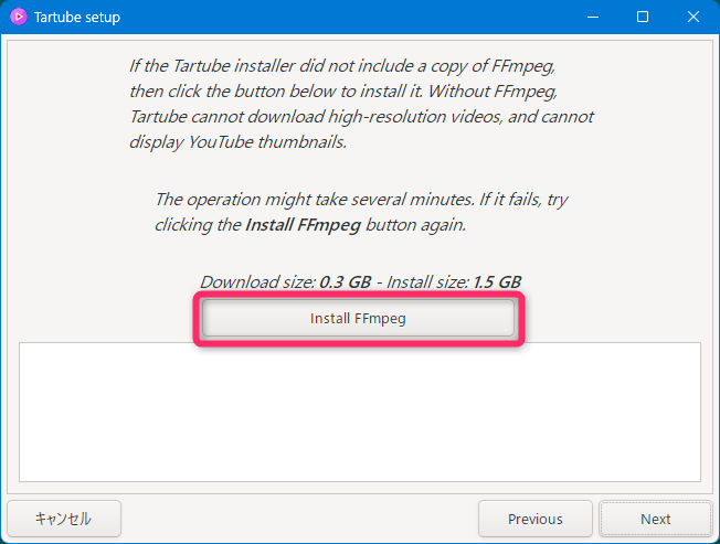 ファイル名にある「ffmpeg」とは、高画質ダウンロードや形式変換を可能にするためのツールで、あらかじめそれを組み込めるようにしてあるということだと思われる。