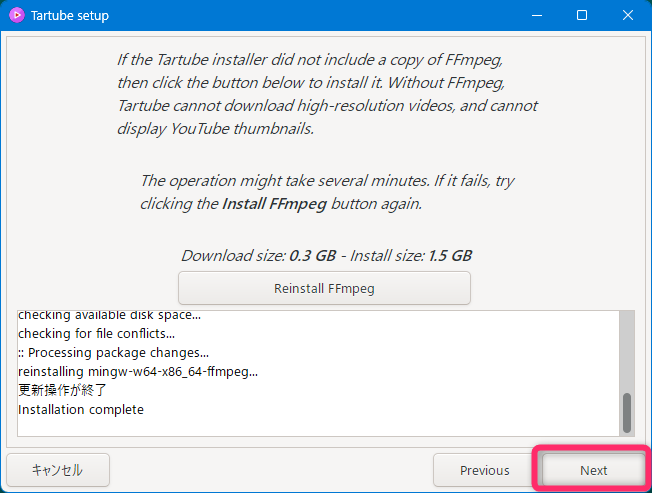 動画を高画質でダウンロードするために「FFmpeg」をインストールします。