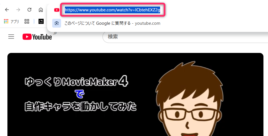 まず動画サイトにて、ダウンロードしたい動画のURLをコピーしておきます。