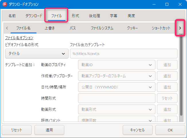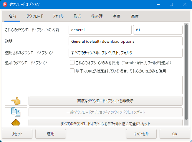 ダウンロードオプションを開き、「後処理」のタブから「一般」を開きます。