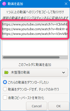 動画を追加するときに、複数のURLをまとめて入力しておきます。