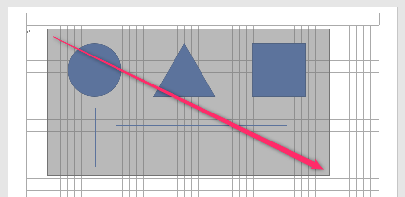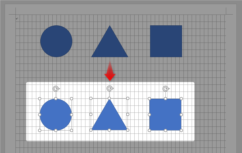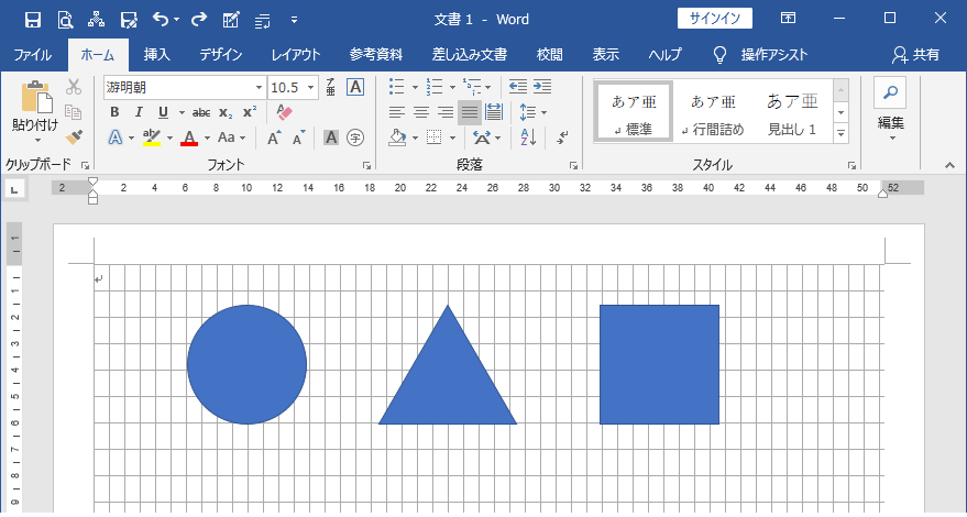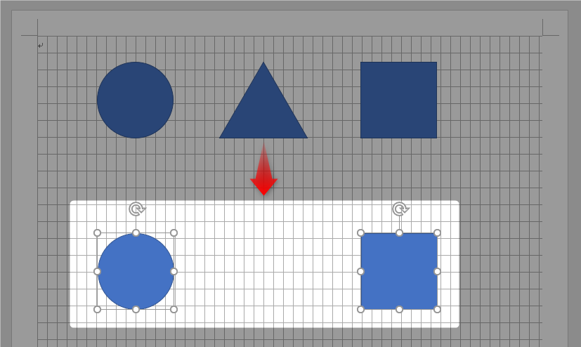 文字グリッド行グリッドを表示させている場合、図形はグリッド線に合わせて移動します。