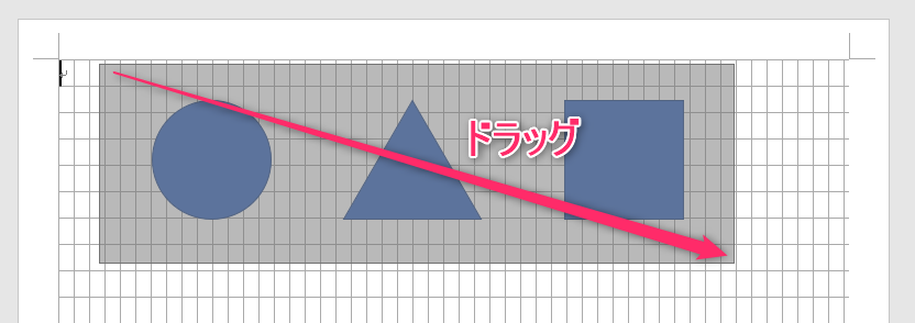 複数の図形をドラッグで範囲指定して選択します。