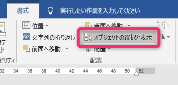 書式」タブから「オブジェクトの選択と表示」をクリックします。