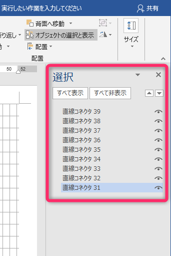 範囲が指定できない図形を一括選択する方法
