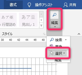 ホーム」タブから「選択」→「オブジェクトの選択」にします。