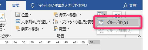 書式」タブから「グループ化」をクリックします。