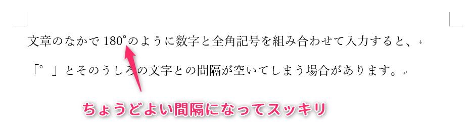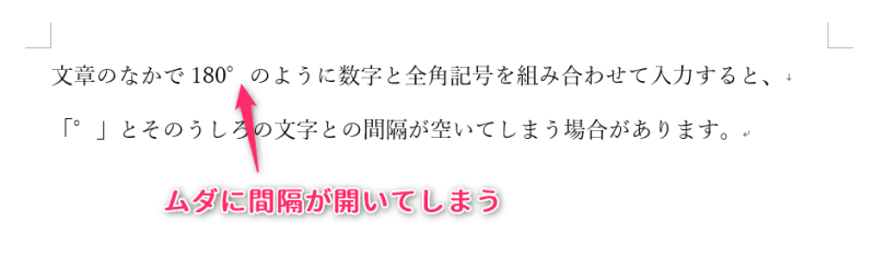 Wordで文章を編集する際に、角度の「°」の記号のうしろが空いてしまう場合があります。